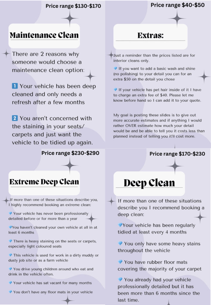If you still want more information about how much your detail will cost, you can check out my SERVICES page or fill out the form below to the best of your ability and I will get back to you with my best estimate of the detail price via email.